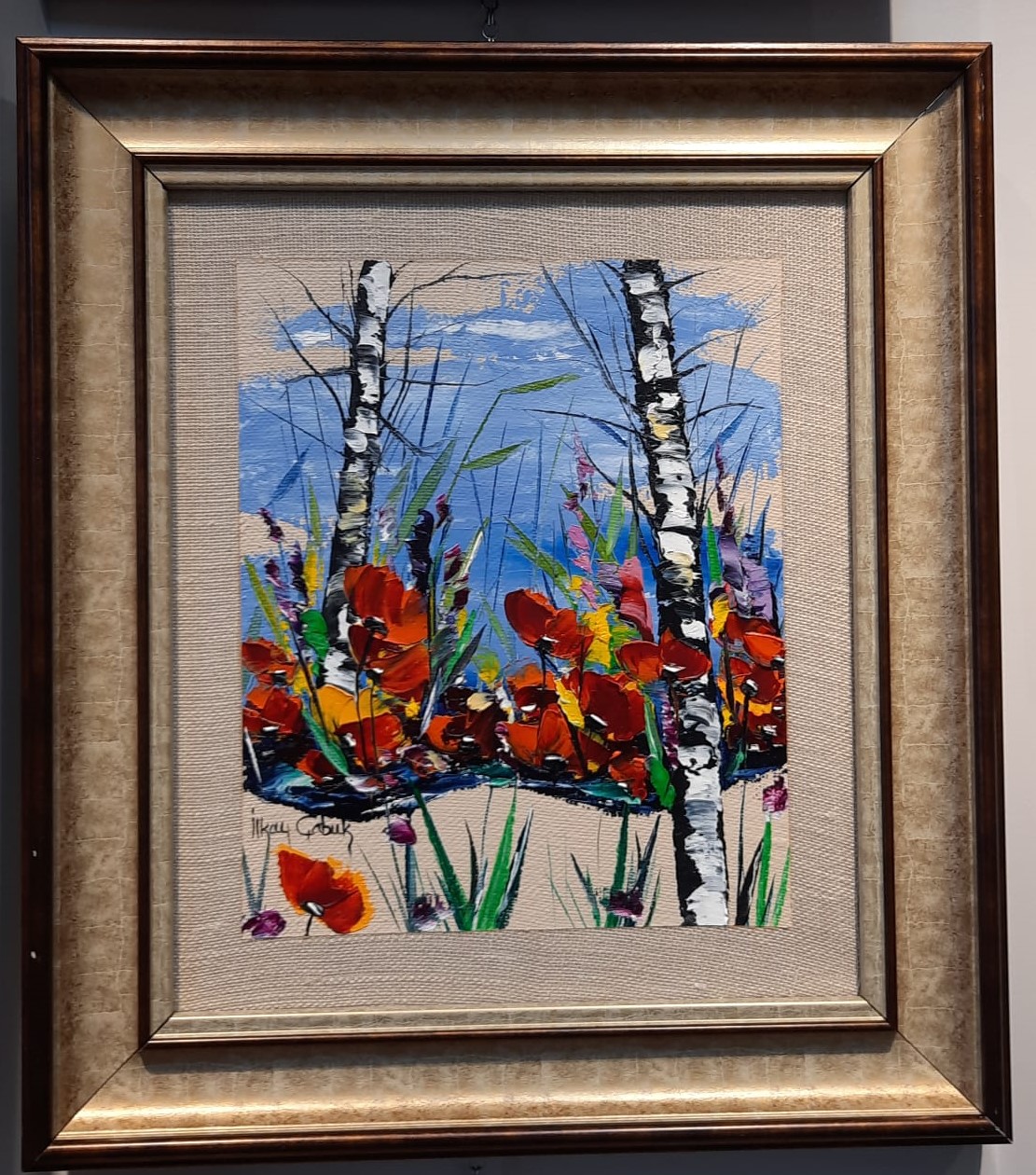 33X40CM İLKAY ÇABUK İMZALI GELİNCİK ÇERCEVELİ